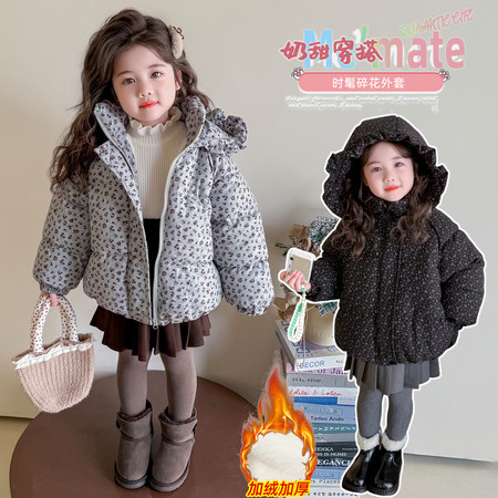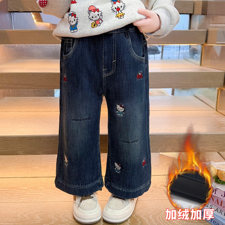 桃奇奇&弹力刺绣小猫加绒加厚牛仔裤