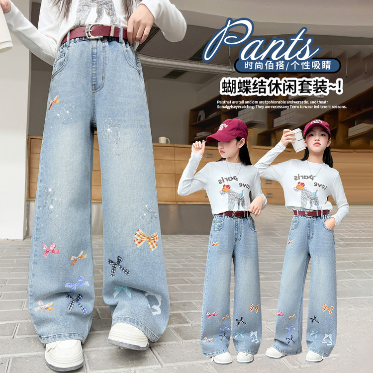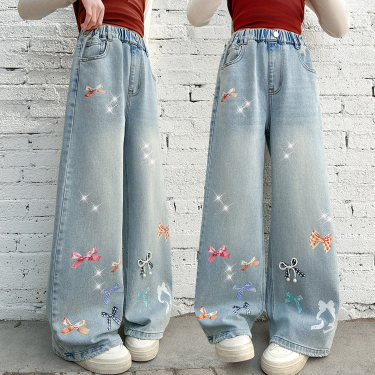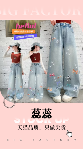 蕊蕊&R156款刺绣猫咪烫钻牛仔裤