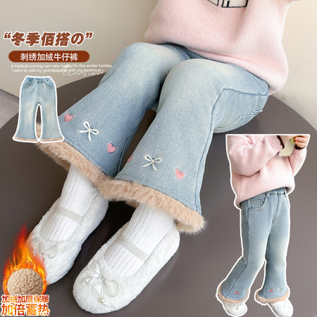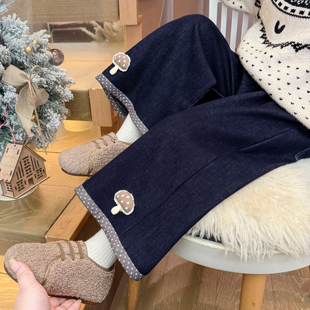 米酱贝贝&蝴蝶结爱心加绒牛仔裤