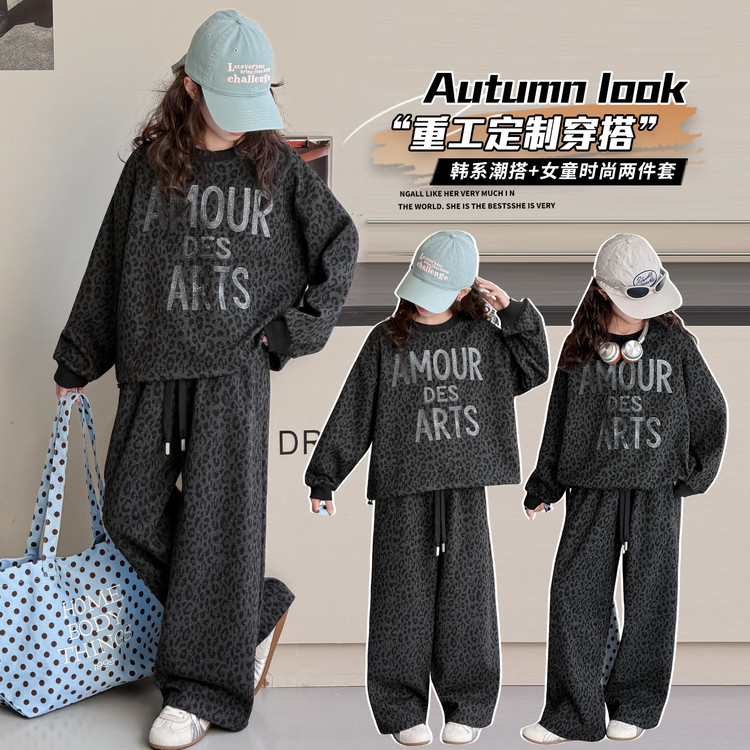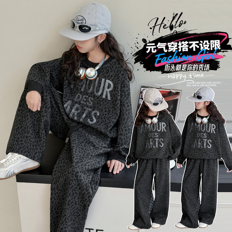 成绩单&cjd6007洋气豹纹阔腿裤套装