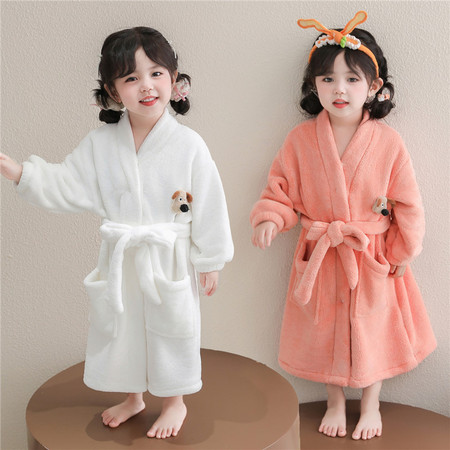 小核桃&L2551女童珊瑚绒小狗贴标睡袍浴巾