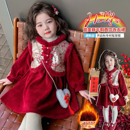 沐沐童装&女童小熊雪人圣诞超级加厚年服毛衣
